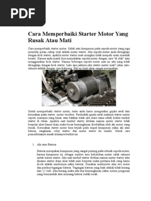 Cara Memperbaiki Starter Motor Yang Rusak Atau Mati