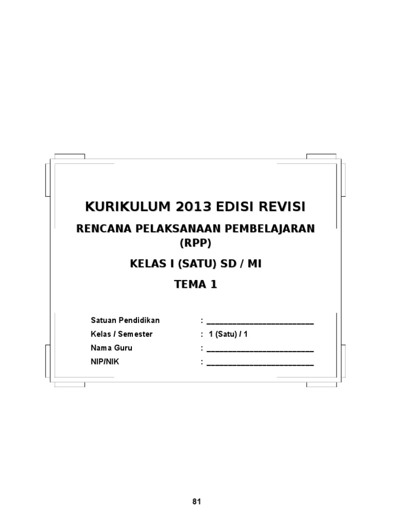 Rpp Sd Kelas 1 Tema 1 Diriku Doc