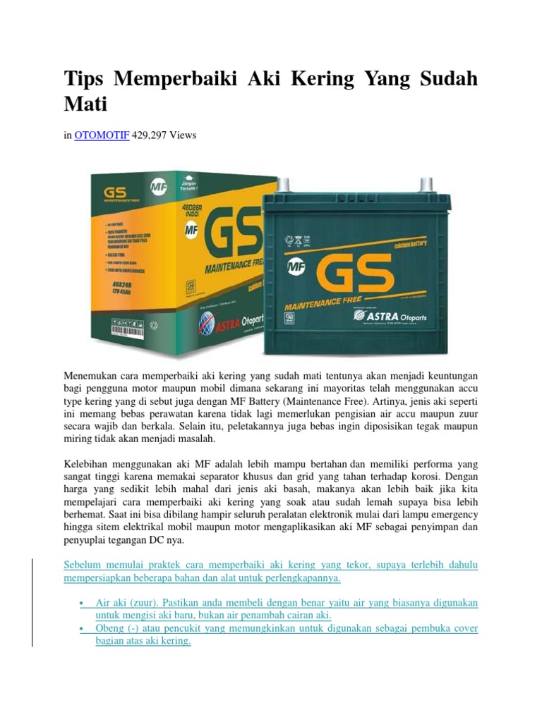 Panduan Memperbaiki Aki Kering Mobil Gs Yang Soak 7saudara Com