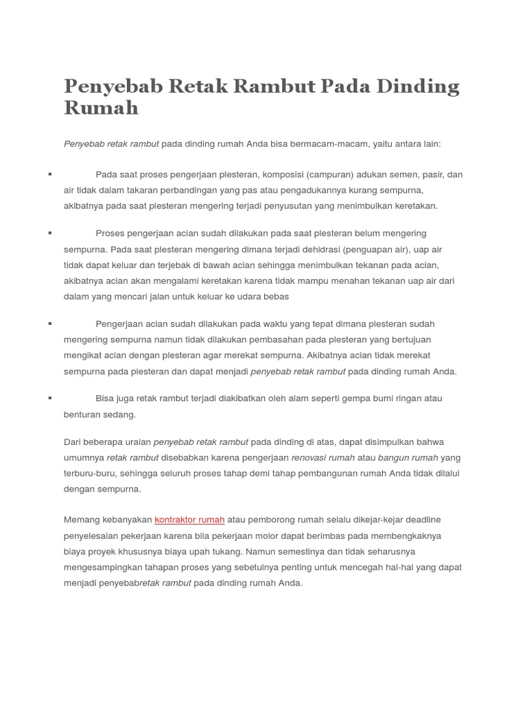 Cara Mengatasi Tembok Retak Rambut Dan Tembus Jeumala Com