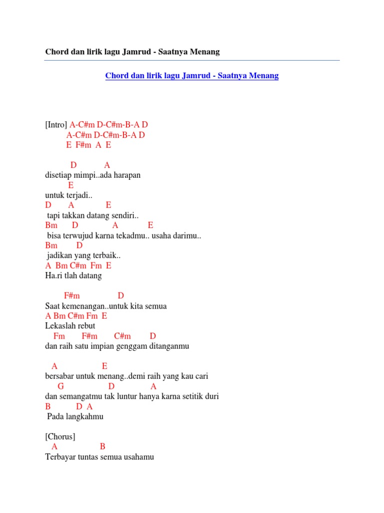 Chord Dan Lirik Lagu Jamrud Saatnya Menang