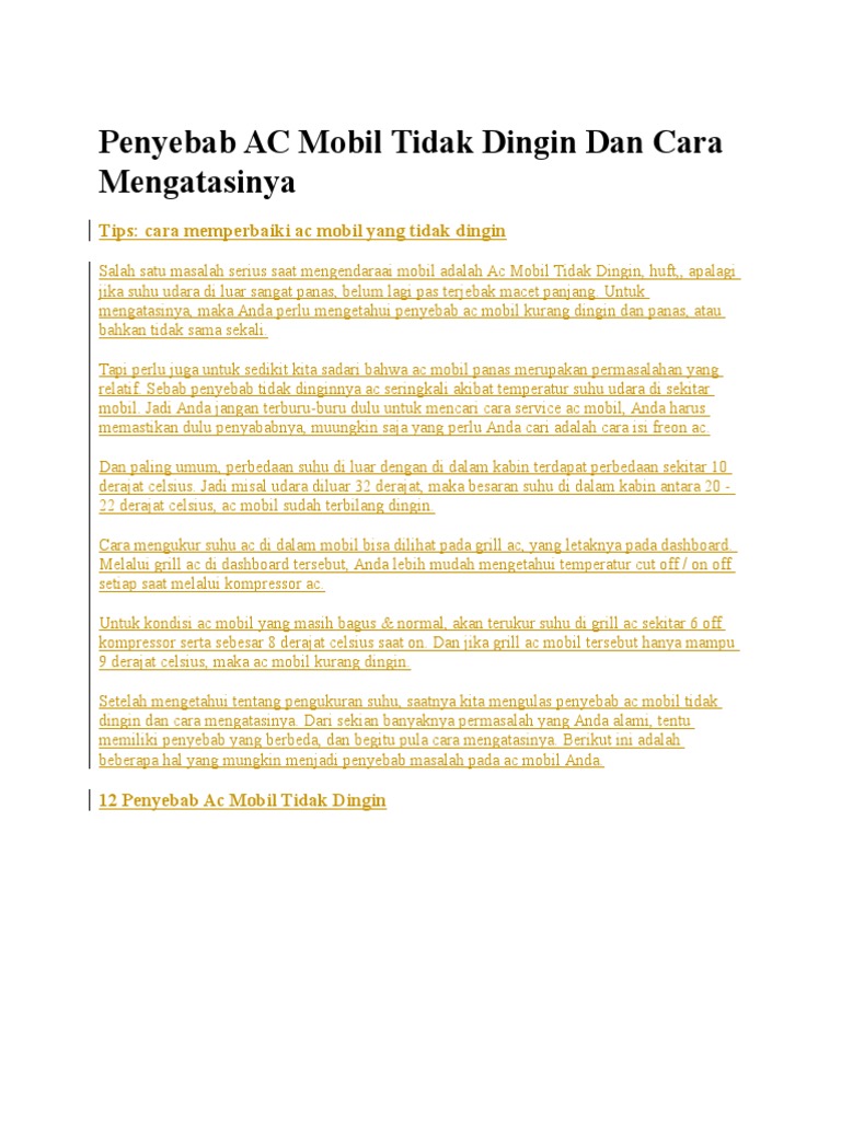 Cara Mengatasi Ac Mobil Yang Tidak Dingin For Guides