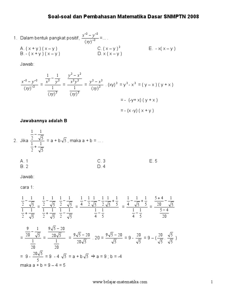 Soal Soal Dan Pembahasan Matematika Dasar Snmptn 2008